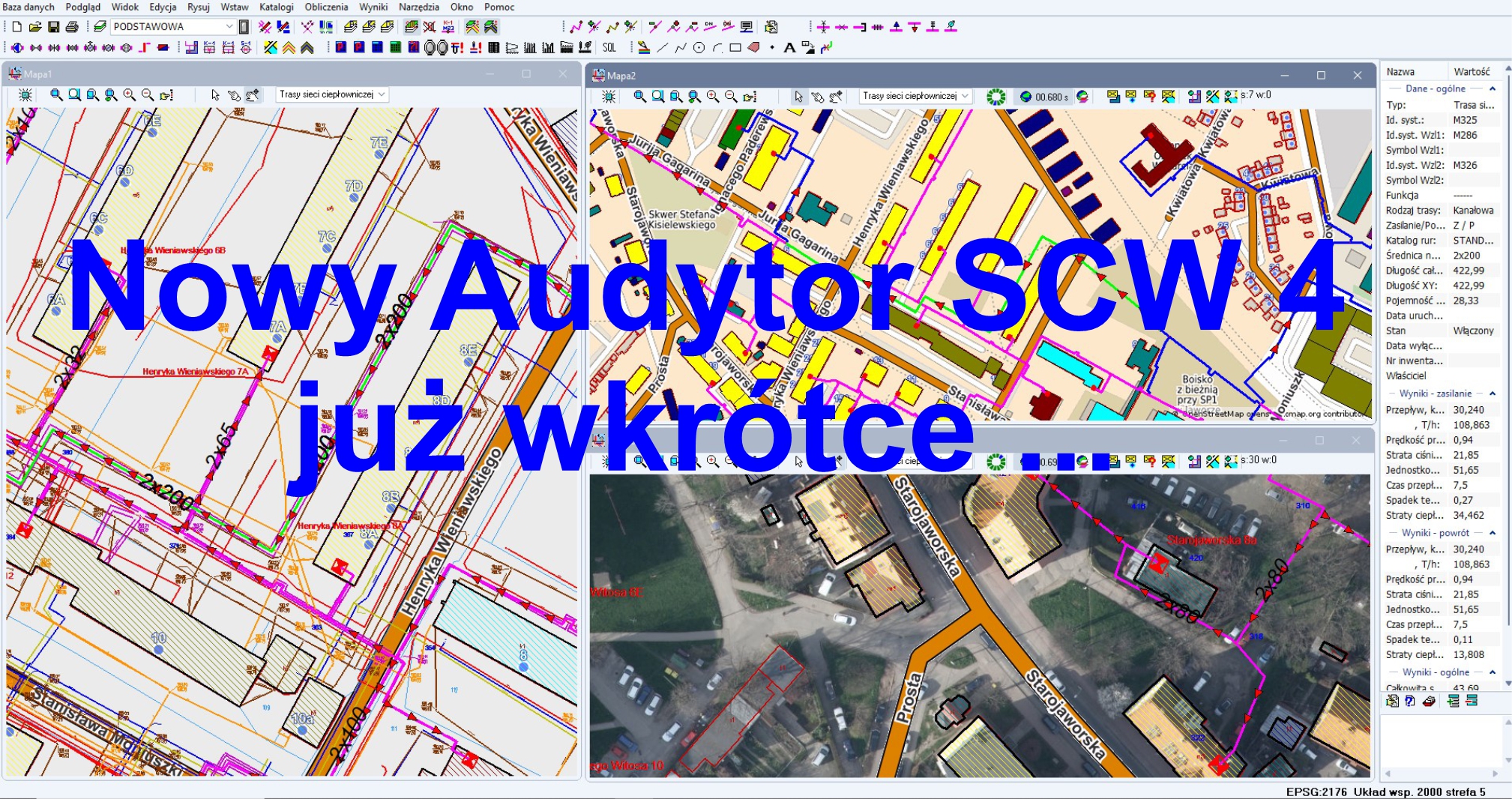 Czwarta wersja programu Audytor SCW zawiera wiele nowych funkcjonalności w zakresie tworzenia bazy danych, obliczeń i prezentacji wyników obliczeń sieci ciepłowniczej.